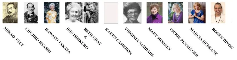 Mrs. Takata passed away in 1980 at the age of 80. Through the years she trained numerous people in the art of Usui Reiki. 22 of these went along to become Master-Teachers and taught others. My lineage is illustrated below.